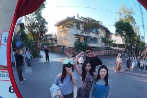 两女生拍 “左脚画圈”,一脚踢同伴进雪地
